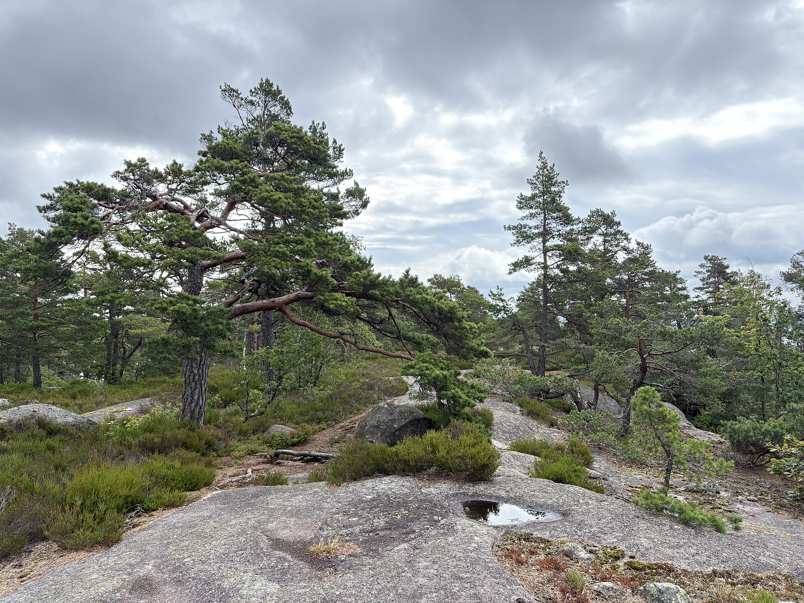 Jeg parkerte i p-lomma NV for toppen hvor stien går opp mot toppen. Stien er lett å følge og er merket med enkelte gule streker i berget her og der. Den passerer like forbi toppunktet (toppunktene) og området der oppe er åpent og fint, dog uten utsikt. Det er flere jevnhøye bergknauser så jeg tok en runde rundt på alle som kunne være aktuelle :)