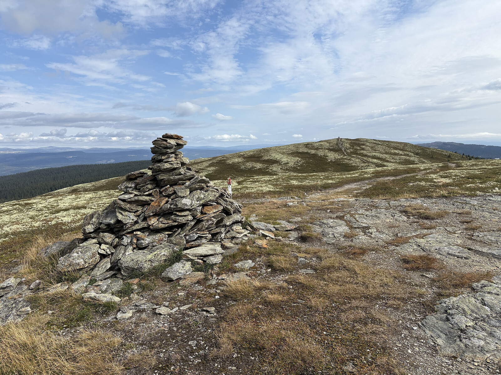 Jeg kjørte til Ormsætra og parkerte i en lomme like før husene. Etterpå innså jeg at jeg kunne kjørt helt opp til der hvor stien går ut fra, der var det p-plass for 2-3 biler. Jeg fulgte merket og god sti helt til topps, til denne toppen er det mange muligheter for alternative ruter. Fin topp med stor varde, sikteskive og god utsikt! Etter en liten stund på toppen fortsatte jeg over til Vesle Nårkampen som ligger bare noen få minutter unna mot NV.
