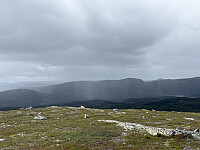 Etter turen til Brennun fortsatte jeg opp til Øyvatnet og parkerte like ved den stengte bommen. Jeg fulgte veien innover til den øverste delen av hyttefeltet nord for Raudfjellvatnet. Herfra kunne jeg følge god sti over Raudfjellet og videre opp til den stilige varden på Kraknatten. I fjellene rundt meg på turen var det stadige regnbyger, men jeg var heldig og slapp unna bygene!