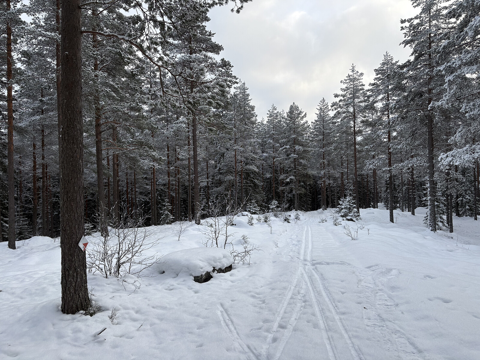 Jeg parkerte på turparkeringen på Skjatvet gård, pakket trugene på sekken og labbet av gårde innover langs veien. Målet var å plukke noen poster på Skijeger'n samt et besøk på Kukollen. Da jeg var rett sør for toppen måtte trugene på, de var nødvendige helt til jeg kom tilbake til veien igjen litt lenger inne mot Slordammen. Det ble en fin runde, om enn noe tung. Det er ganske sjeldent at jeg går såpass langt med truger.