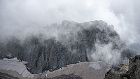 Føringstur for Jotunheimen Arrangement. Snudde på 1650m pga mye snø, godt over 20m/s vindkast på breen og mye verre vær i værmelding som snart kom inn. Utforsket litt blåis før retur.