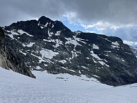 Føringstur for Terje til alle 2000-metringene på Maradalsryggen. Terje gikk i forkant opp til Bandet og jeg kom halsende etter på 1t 30min fra Skagastølen. Gikk direkte opp og ned på Nørdre fra Slingsbybreen. Hadde god hjelp av sporene mine fra et par dager i forkant.