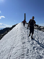 Føringstur for Gunnar over Semelholstindtraversen. Litt kronglete oppstigning mot Nørdre i nedre del. Kanskje bedre å holde lenger mot øst og runde det bratteste? Morsom travers med flere eksponerte punkter. Litt køddent å finne egnet standplass etter siste taulengde før toppen, men måtte forlenge fra sikringer over kanten mot sør. Sikksakket oss en del på breen ned igjen for å holde oss på snø og slippe stegjern på is.