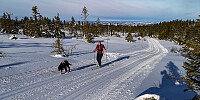 Nykjørte løyper opp til Rausteinshytta, men midtveis på runden var det ikke kjørt. Ned Bekkedalen og forbi Hutjerna og opp til Oksbakken var det perfekte løyper. Smøreski idag. Bra feste, men ikke superglid da det var et syltynt snølag i løypa. Godværet som var meldt på ettermiddagen kom aldri, men det startet heller å snø litt.