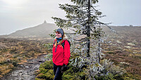 Tur fra Torsætra. Utbyttet i dag var bratte bakker og balansetrening i de våte stiene. Regn/yr og tåke idag. Tur alene med Embla.