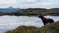 Startet turen med litt regn. Var redd for krøllene mine, men regnet ga seg og det ble oppholdsvær resten av turen. God temperatur og lite vind idag. Ingen solgløtt denne dagen. En fin runde dette med en god matpause i gapahuken oppe på Krokvassfjellet. Tur med kona og Embla.