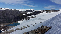 Har vore litt dårleg vær i det siste og ein soldag er reine skjære vitaminsprøyta! Ei stund sia eg har vore oppom Kvannebakkbu, og lysta var no tilbake for å prøve å springe opp. Kroppen kjennast endelig restituert etter operasjonen tidlegare i år. Ferdig på jobb kl 14.00 så eg hadde framleis ein lang turdag føre meg i godværet. Starta ifrå Befring Kraftstasjon og ved parkeringa lengre oppe, sto det mange bilar. Ferietider, strålande vær og så er det jo ein indrefilet av eit naturområde i Jølster. Eg mumla noko om at det var litt varmt oppe i bakkane, då eg passerte ein turgåar! I forbifarta var han rask å svare at vi kan ikkje klage!! Nei, nei og atter nei og selfølgelig ikkje.... høyrde eg meg sjølv preike på vidare oppover! Skulle berre ønske eg hadde ein liter >>>