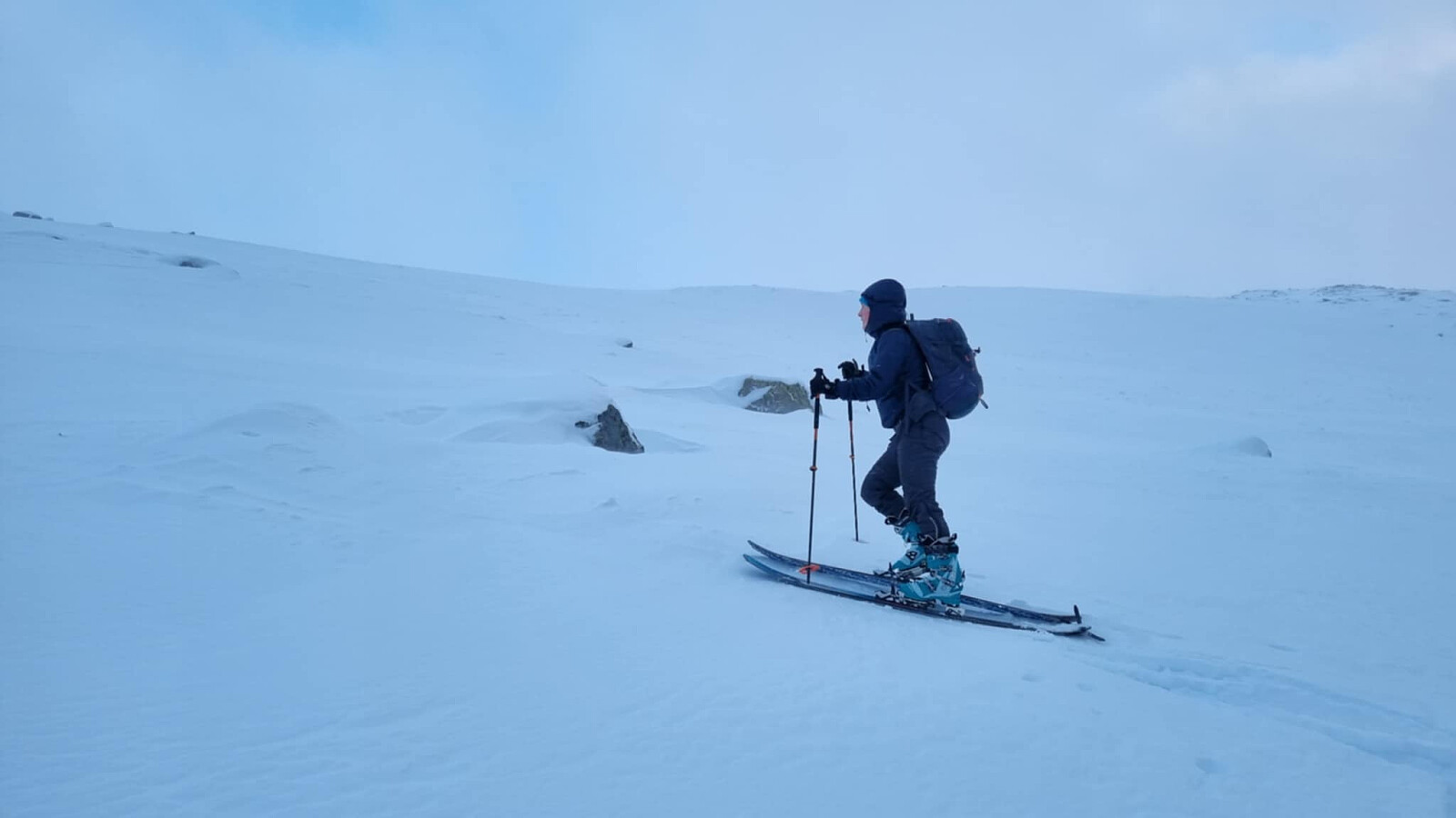 Brit Siv var gira på å få til ein snø observasjon oppe ved Tortnegrøegga. Eg hadde vore oppe i området dagen i forkant opp mot Strupen og visste at det var eit heller tynt lag med snø.