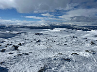 Lene og jeg startet med ski på sekken fra Bødalssetra. Jeg hadde Randoski som fungerte bra opp Brattbakken. Planen var bestigning av Lodalskåpa, men da Kåpa reiste seg fikk Lene kalde føtter så vi gikk heller på Brenibba. Fin tur det også og lang morsom nedkjøring.