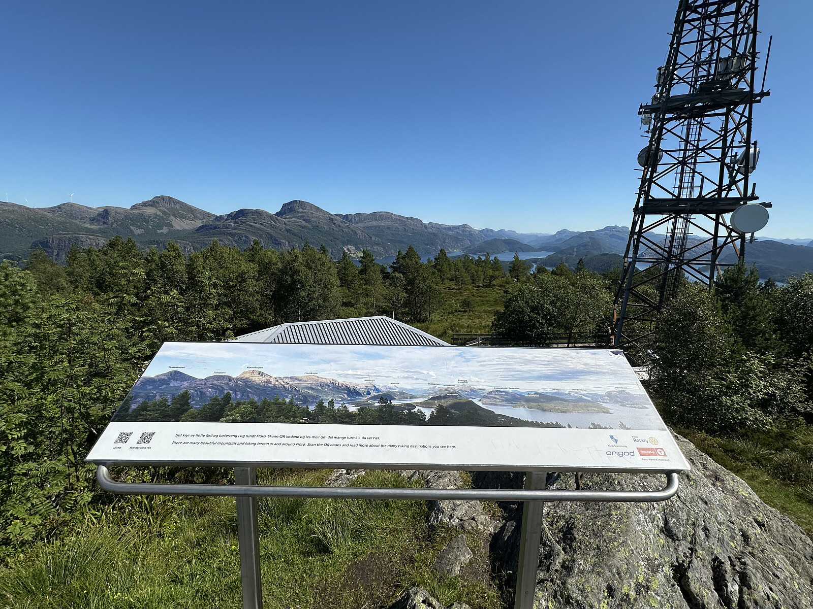 Fikk tips om at det ar kommet opp en ny sikteskive på Florø. Nærmere bestemt nordvest på Storåsen. Flott utsikt herfra, spesielt vestover mot Kinn og de andre øyene ute i havgapet her. Knallvarmt og flott vær i hele dag