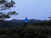 Etter turen på Mjømna kjørte vi tilbake til Sandøyna og parkerte langs siden av veien i Vassvikdalen. Herfra var det straka vegen rett ut i terrenget mot Lifjellet. Harald utfordret meg til å holde en så stø kurs mot toppen som mulig uten å se på kartet underveis. Ganske fornøyd med resultatet, men siden toppvarden dukket opp ganske raskt, var ikke dette den vanskeligste toppen å få en slik utfordring.