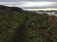 En flottesen tur i et mangslungent landskap. Utrolig vakkert mange steder med grønne stier under trekroner og naturlige treportaler, flotte svaberg og små viker. Sandstrender og langgrunt i Naverfjorden, stupbratte svaberg andre steder. Turen kan sikkert stykkes opp, da 23 km er en bra gåtur. Vi startet fra parkering ved fotballbanen i Stavern/ Fredrikvern. Like ved ligger også Minnehallen for sjømenn. En plass vel verdt et besøk, med flott utsikt.