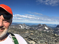 Svært vakre omgivelser, og yrende fugleliv på start. Fulgte sti rett vest for parkeringen, i retning Oskampen, (DNT-selvbetjent hytte), men tok av nordover fra stien før vann på 1667moh ca.