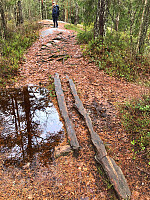 Fin tur i variert terreng, kupert, og gjørmete for anledningen. Men mildt og godt for november å være. Vi ranglet oss rundt fra ås til ås, og forbi flere idylliske vann. Spennende terreng med klatring ved Hauktjern. Dronningkløftene er kuuul. Sarabråten vitner om en svunnen tid, hvor fiffen holdt herskaplige fester.