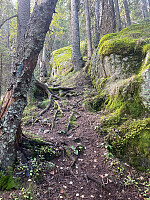 Korthåret tur på sti med mye røtter men merket til toppen. Kom kraftig regn like etter start, så bra jeg hadde med skift…