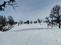 Eftasturer opp den nye løypa fra Unnigård og opp til Sætersjøvola. Videre ned til løypa nede ved Sætersjøen. Opp til Haugsvollen og videre nordøstlige forbi Storsanntjønna. Trivelig bjørkeskog i østlia forbi tjønna. Noen ryper gikk på vingene. Enkelte skispor ble krysset. Videre gikk turen om Vardhøgda og på skrå i lia ned til Johaugsvolden. Fantastisk fint og lettgått skiføre.