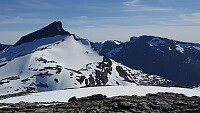 Mye snø i de nordvendte hellingene nord for Leirvasshornet, men den var god å gå på. Traff etterhvert på den godt merkede og velbrukte stien til Storhornet, og fulgte denne resten av turen.