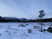 Liarvatnet var utruleg nok ikkje islagt etter to veker med dugeleg frost, så me måtte ha Boremyr i Målandsdalen som utgangspunkt. Start frå parkeringa ved Rv. 13 kl. 1120, og på ski med relativt tunge bører brukte me 1 time 25 min opp til demninga i Sagåna, der me endeleg møtte solstrålene. Det var avblåst her som venta, men me tråkla oss opp mot Målandsvatnet utan å vera >>>