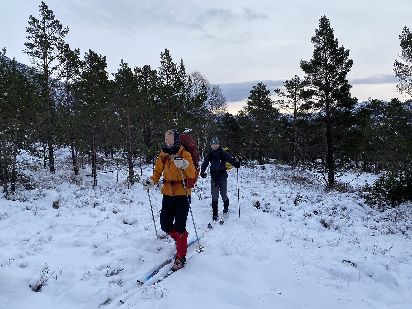 Endå ein fin tur til Jarle si hytte ved Forenesvatnet, og endå ein gang ville ungdomane vera med , men nå sjølvsagt på ski. Det hadde ikkje kome noko særleg påfyll av snø sidan dei var over Målandsheia på forrige tur, og me rekna helst med at det var grundig avblåst der oppe etter kraftig vind dagen før. Vind skulle det óg bli neste dag – stormkast utover ettermiddagen – så me la bare opp til eit døgn på tur.