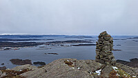 Denne turen frister ikke til gjentagelse, iallfall ikke under dagens forhold. Riktignok veldig fint opp gjennom furuskogen med plenty med hjortestier, men fra ca. 350 moh. begynte sleip snø, og jo høyere opp, jo verre, siden snømengden økte. Det var vanskelig å plassere føttene riktig og potensielt mange muligheter for å knerte føttene. Snøen skjulte glatte og løse steiner og lyng med luft under. Hustrig på toppen i regn og vind, men flott utsikt selv på en grå ettermiddag. Brukte god tid nedover det forræderske snøpartiet og datt bare en gang uten å slå meg.