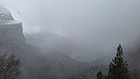 Været er som en jojo. I går datt temperaturen fra +9 til +1 i løpet av dagen, og snøgrensa sank til 200 moh. I dag tidlig var det snø helt ned til fjorden, men før jeg kunne gå fra jobb for dagen hadde snøen krøpet langt oppover fjellsidene igjen. Kald vind, men sola varmet litt. Lumske forhold med nysnøen som stedvis lå i store fonner, så fra toppen kuttet jeg kortest mulig til vei og tok en ekstra runde i finværet.