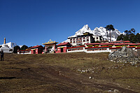 Etter en natt med mye bråk i tehuset av folk som sprang på do - en fra en utenlandsk gruppe med matforgiftning. Nesten alle i gruppa har sovet dårlig. Våkna til skyfri himmel og utsikt til Ama Dablam, Lotse og sjølveste Everest. For en «utavdegsjæl-opplevelse»!! Magisk - ikke noe annet ord som kan beskrive det. Etter havregrøt og omelett, fikk vi en snill tur til Pangboche. Panoramautsikt til Ama Dablam på så og si hele turen. Kryssa elva, nok ei hengebru - gikk fint. Mange fotostopp før vi kom fram til dagens tehus. OK standard. Lunsj på tehuset, før turen gikk til dalens eldste kloster som er fra 1600-tallet (Pangboche Monastery). Interessant å sjå. Videre gikk turen opp til den store buddaen. Avslapping resten av dagen - oppladning til morgendagens etappe.
