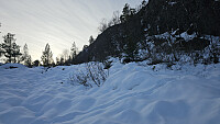 Jeg kjørte svært bratt vei opp i et boligfelt til stistart. Heldigvis var det både mulig å parkere og snu der oppe.