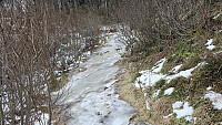 Jeg snudde på denne turen i går kveld, da jeg ikke hadde tatt med brodder og stien og terrenget var isete. I dag gikk det lett i dagslys og med brodder.