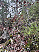 Fulgte først sti og merka løype til Liindalsknuten som er en av Birkenes kommunes toppturer. Fikk klippa av turen på toppturkortet og gikk i terrenget til Lillehei. Ca. 400 meter i terreng før jeg kom inn på noen svake spor av en gammel skogsvei, deretter til slutt i terrenget igjen. Ganske greit å gå her, selv om det ikke var noen sti. Så ut som det var en gammel bålplass på toppen, men må være flere år siden denne har vært i bruk. Litt utsikt fra toppen og slettes ikke så verst tur!