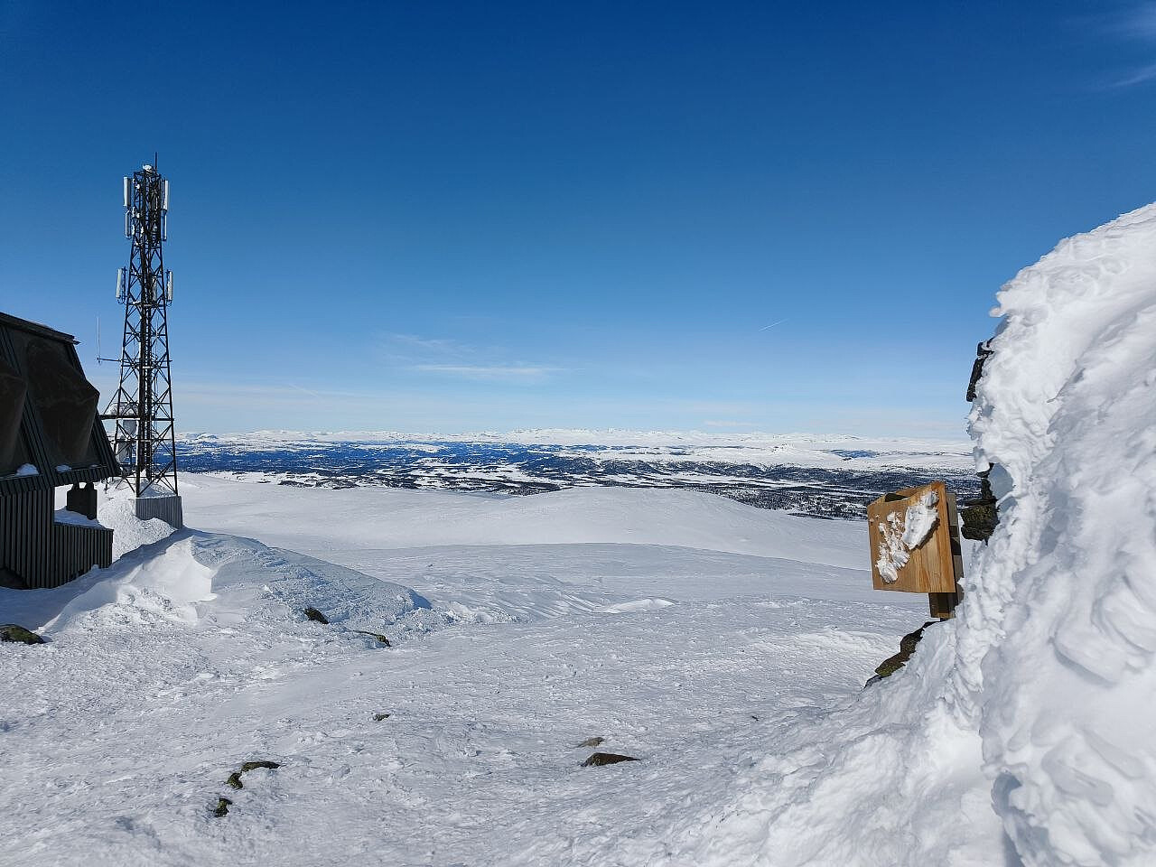 Da vi la turen innom varmestua etter toppen, var det nylig fyra der, så vi satt lunt og varmt og spiste nista vår. Så lite til sola i dag, og det var litt mer vind enn forventet.