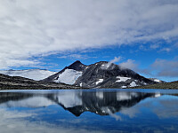 Eg parkerte ved Melkevoll bretun (75kr) og gjekk på bratt, men god sti opp Oldeskaret. Vidare er det verken sti eller merking, men fint terreng å gå i. Når det er sol er dette heilt klart ein tur som får terningkast 6.