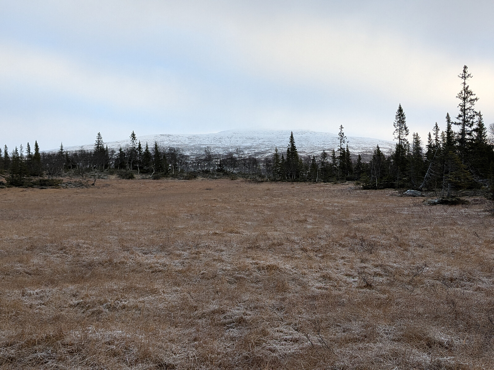 Et lite minijubileum førte meg til Sørli i Lierne. Når det er runde tall må man velge fjell over 1000 meter. Trøndelag og alle fylkene nord for oss har jo ingen topper over 2000 meter. Jeg kjørte inn Eikdalsveien og svingte til venstre ved skilt Gammelheimen. Bomvei kr 100,- Denne bygda ligger et steinkast unna Sverige. Målet i dag var PENNINGKEISA - BEETNEHGAEJSIE (1045 MOH) I tillegg skulle jeg innom riksrøys 187 mellom Lierne og Krokom. Det beste startstedet er å kjøre forbi setra Gammelheimen (Hele setra eller enkelthus leies ut) Kontakt Bakken Fjellgård. Her går det sti langs Kvennelva som må krysses. Jeg var usikker på vannføringa, så jeg startet turen min på Eidesseteren. Litt lenger rute, men elvekryssing unngås. Flott vær i dag, og ca tre minusgrader. Lange myrpartier >>>