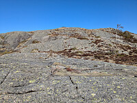Jeg tok ferja fra Lund til Hofles, og kjørte til Kolvereid, Saltbotnkorsen og videre etter Månesvegen til Rød. Og inn på Søreitervegen. Passerte Vangsåsen, en livlig plass i gamle dager. Fortsatte til Sør-Eitran og parkerte ved grendehuset. Gikk nord for Vassbjørga og videre til Dyrhaugtinden (258 moh)på Svanhaugan. For å nå neste mål måtte jeg ned til Hjelmsengbrekkå. Bratt nedover, men flott bjørkeskog hele veien. Å komme seg opp til neste mål på 197 moh. var mer krevende. Mosegrodde steiner i alle fasonger i bratta opp til toppen. Flott utsikt mot Risværet. Retur opp til myra nord for Svanhaugan. Her kom jeg inn på en tydelig sti som ble til en traktorvei ned mot Osplia. Nede ved gården var det ei infotavle om en sjekk ut tur til Lauvhatten. >>>
