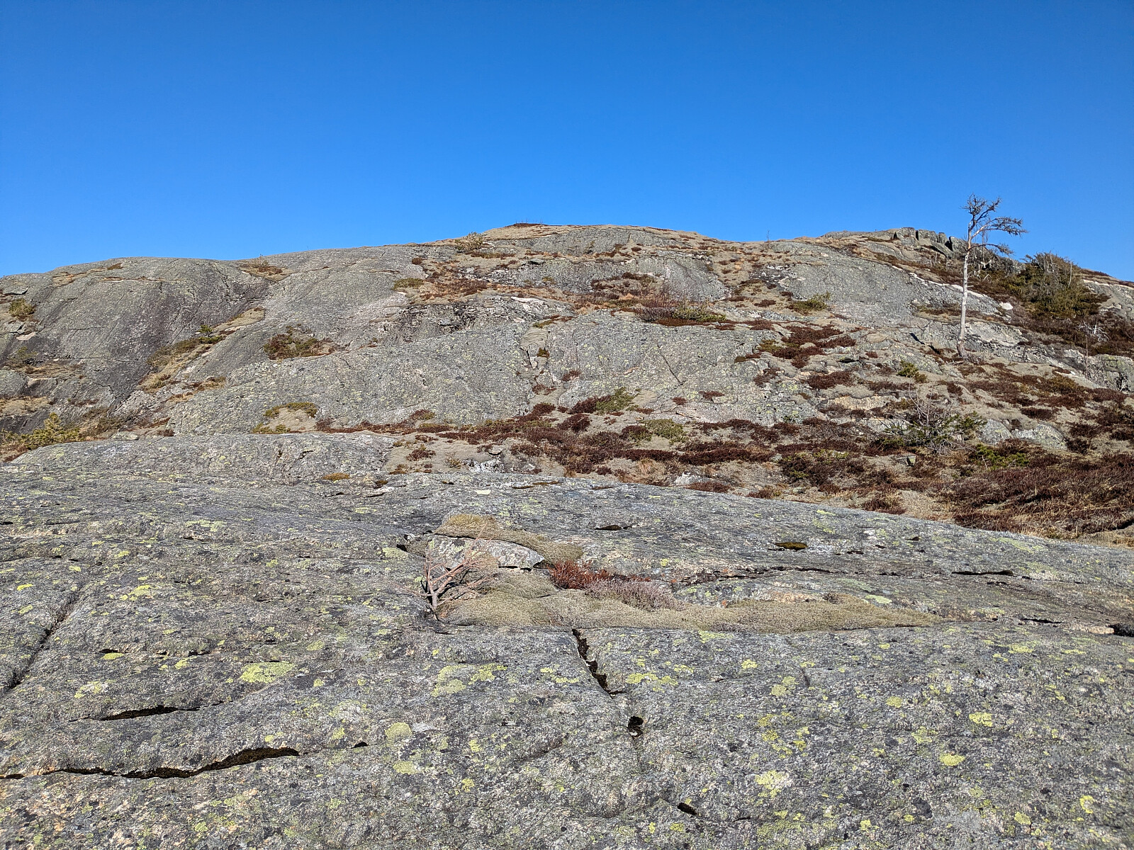 Jeg kjørte videre til dagens tredje topp som var Blåberget (203 moh) som ligger nord for Nubdalsenget. Parkerte i krysset ved Månesvegen. Bratt i starten, etterpå flatt og fint mot toppen. Stor varde litt før toppen. Flotte tjønner på topp-platået. På returen fulgte jeg noen kløfter ned til veien, og fulgte veien tilbake. 3 kilometers tur. Været i dag var sol, litt snø og haglbyger. Veiene var glatte. Dette var Nærøysundtopper nummer 59- 60- og 61 av hele 101 mulige topper i Nærøysund
