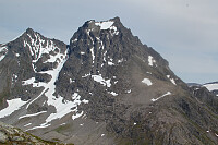 Sommer: Total tid 4 timer Ca 8 km 760 høydemeter Godt egnet både som topptur vinter og fin fottur sommer Når man sitter i Trondheim, været er dårlig i Trollheimen, sørover og vestover, men har lyst på tur hender det at været er bedre østover. Og fra Trondheim er det ikke langt til fine turområder i Sverige. Områdene nord for Sylan rundt Handöl og Storulvåns er ca 130 km og drøye to timer unna i bil. Sånn ble det en dag i juli 2022. Kjøre til Storlien og ta av fra E14 ved Enafors mot Handöl, men ta av til venstre før du kommer dit - godt skiltet til Storulvån. Fint og lett turterreng så og si over tregrensen hele veien. Vi parkerte akkurat der Norder Tvärån renner ut i Handölan på ca. 700 meters høyde. Da ser du fjellet på høyre side og det bare å gå på ren sikt. Ganske >>>