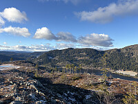 Køyrde til Dammen og gjekk jamnt oppover på litt vanskeleg underlag. Snø kom natt til i går som forveien del hadde regna bort, og hadde gjort terrenget dyvått og stigande ganske lynsje med snø, is og søyle. Vi brukte 59 min opp, gjekk ganske radig, men underlaget får ta skulda for dårleg tid. Skodda letta litt på toppen, så vi fekk utsyn. Same vegen nedatt, sette føtene forsiktig! 1 t og 45 minutt, 5,5 km, 481 hm. Erling og Anniken var med. Godt med sporty familie!
