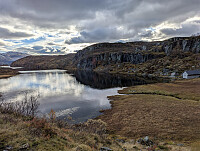 Ettermiddagstur for å sanke en topp på Voss-lista i regntungt vær. Valget landet på Olavstølsnuten, som virket innenfor rekkevidde (gitt antall gjenværende timer med dagslys). Kjørte mot Granvin, tok av mot Espeland, og etterhvert ved Liasete på Olavstølsvegen. Endte med på parkere langs veien litt ovenfor den midtre parkeringsplassen - litt lengre fremme var det satt opp en sperre i vegen. Fulgte veien opp til Olavstøl, hvor ferden gikk videre på sti. Merket stiskille mot Olavsbu opp mot Stavaskaret. Nesten på toppen av skaret tok jeg av vest mot turmålet. Fant ikke noen sti videre, men fulgte naturlig stigning. Siste del før toppen er det småbratt opp på topplatået. Ingen utsikt i dette været, kun tåke og regn. En kort visitt og noen bilder før jeg hastet ned og rakk >>>