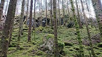 My initial search was unsuccessful, but after consulting GPS tracks from previous PB reports to Kolåsen I managed to locate the hidden entrance in between the trees. To my surprise the trail itself was marked (something that would also have been a good idea for the trailhead?) and I soon found myself at the fallen trig marker. As expected there were no views at all from the summit.