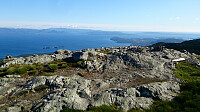 Started by taking the bus to Ulvenskiftet and walking up Tøsdalsvegen to Tyssdal for the real start of the hike. We then followed the marked trail northeast, first along a gravel road and later along a nice trail, until reaching the sign for "Møsnuken (bratt)", i.e. "Møsnuken (steep)", where the trail turned north. The indication on the sign was quite accurate, as we soon found ourselves climbing upwards among lots of large rocks. But while rather steep, making progress upwards was still not very difficult. Upon reaching the end of the large rocks, the trail again turned northeast and flattened out, and we quickly arrived at the summit of Møsnuken for spectacular views in all directions! Quite windy at the summit, so we did not stay too long, and soon doubled back in the direction >>>