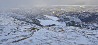 Short hike after work to catch the sunset at Ulriken. Lots of ice that made snow chains mandatory, especially for the final section of Oppstemten and for most of the following descent along Landåseggen, which most likely explains the unusually low number of other hikers on this sunny afternoon.