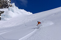 Etterjobbtur med litt skibæring i skogen, men ellers masse fin slusjsnø og litt tørrsnø å nyte! Fortsatt over 3m med snø øverst i bolla...