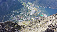Parkerte ved parkering nord for Hydro. Her starter sti til Flaggnuten og Hovsnebba. Den snor seg bratt opp i starten, og kjetting tau er lagt ut tre plasser. Unngår alltid å bruke disse, om mulig :-) Liten avstikker ut til Flaggnuten, med fin utsikt over Sunndalsøra.