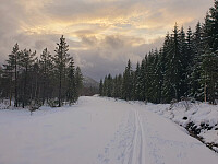 Deilig å gå på ski igjen :-) Kommet 10 cm snø siden preparering i går kveld, men veldig fint å gå i opptråkkede spor. Ny preparering i lysløypa og Kordalen igjen i ettermiddag. Fint med felleski :-)