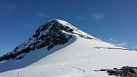 På nedturen ble det en avstikker til nordøst-toppen. Bratt ned på breen, og fin kjøring (litt skorpe i skyggen) på flanken ut til den sjelden besøkte toppen (for spesielt interesserte..). Nesten en time på denne t/r.