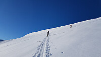 Solen glimret med sitt fravær denne dagen, men ellers ble det en flott tur til et av de virkelig fine ski-fjellene i nærområdet (men vær obs på dette fjellet mht rasfare). Strålende nedkjøring!