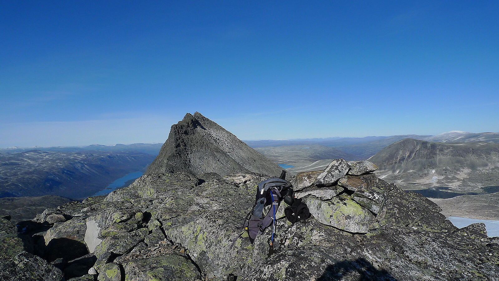 Omsider var dagen kommet for et besøk på Høgeloft som er det høyeste fjellet i Lærdal og Hemsedal. Astrid og jeg overnattet i privat hytte på Slettane litt øst for Eldrevatn, og hadde fått låne sykler hos bekjente i en nabohytte. Start fra bommen på anleggsvegen innover mot Juklevatnet kl 09. Fulgte veien ca. 4.5 km nordover med høydestigning fra 1100 til 1300 m. Brukte ca. 1 time opp til startpunktet på et flatt myrområde like før en liten bro hvor vi satte fra oss syklene. Så fulgte vi den vanlige ruten østover mot toppen. Ruten som går opp på sørsiden av et bratt elvegjel er ganske bra merket med små og store varder hele veien til topps. Først ca 1 km innover mot det bratte partiet ved fossen. På flaten så vi en liten flokk med reinsdyr som trakk sørover. Ved fossen blir >>>
