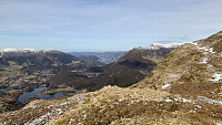 Ny tur med Bontveit som utgangspunkt, denne dagen med hyggelig turfølge av tobeinte Helge Titland og firbeinte Akon - for anledningen i varmedress! Vi fulgte skogsvei og senere isete sti til husene på Bjørnastølen og fortsatte opp sør-ryggen til Vigrane og dagens primære mål for turen - Nobbane .