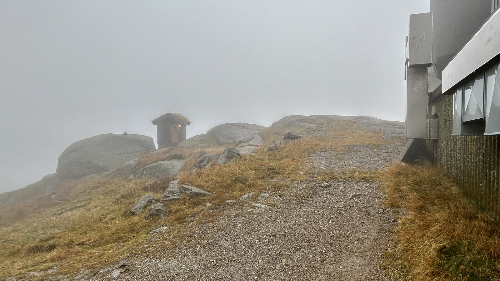 Etter overnatting i Farsund våknet vi til alt annet enn optimalt turvær - regn og tåke hele dagen var meldingen fra yr.no, og slik ble det. Fra Farsund kjørte vi mot Lyngdal og fortsatte mot NNV til Dragedal der vi tok av mot venstre inn på den smale vei 4102 Heradveien forbi Røyseland og Bjørnestad til Kaldåsknipa p-plass .