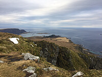 Jeg kunne ikke kjøre fra dette området uten å ha fått med meg Litleskjerdingen. Jeg må innrømme at når jeg var kommet ned til bilen etter turen på Melen etc og mørket var begynt å gjøre seg gjeldende, så var motivasjonen ikke helt på topp til å navigere seg oppover mot Litleskjerdingen med hodelykt. Men når det er sagt så steg den igjen så snart jeg hadde fått på meg tørre klær. Jeg fryktet at det kunne bli litt knoting oppover den vegeterte delen men dette løste seg utmerket. Jeg kunne tidvis ane noe som lignet et tråkk og veien opp ble mye kjekkere enn først antatt. Det var flott å komme opp og se lysene fra tettstedene vestover mot Haram og Ålesund sammen med en liten lysende nymåne :-) Camp for kvelden ble Søvik og Gamlen Småbåtlag hvor det er tilrettelagt >>>