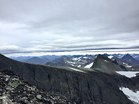 Jeg satte fra meg bobilen og kjørte med Geir Arne videre via bomveien opp til Steinstøylen i Romedalen hvor vi parkerte ved veis ende. Herfra meget god og tydelig sti bratt opp til skaret før Brillevatnet. Herfra var det lettgått oppover mot Romedalstinden på mose, og lav vegetasjon, perfekt på en litt våt dag. Det småregnet stort sett hele turen, men ble ikke de store mengdene og vinden som var tilstede gjorde til at vi egentlig >>>
